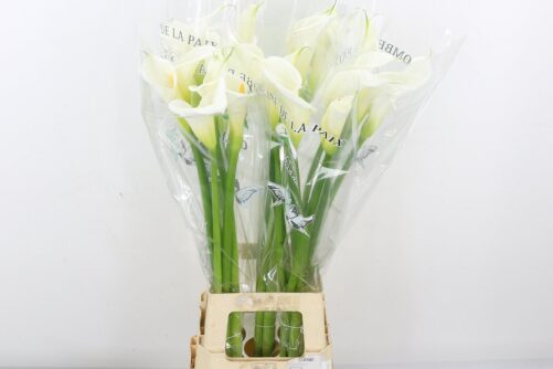 WHITE ARUM LILIES – Fresh from the Dutch Flower Auctions. An excellent flower which looks fabulous in a slender vase.