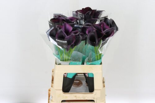 DARK PURPLE CALLA LILIES – Fresh from the Dutch Flower Auctions. An excellent flower which looks fabulous in a slender vase.