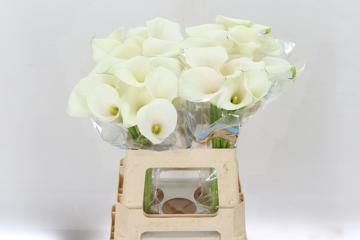 WHITE CALLA LILIES – Fresh from the Dutch Flower Auctions. An excellent flower which looks fabulous in a slender vase.