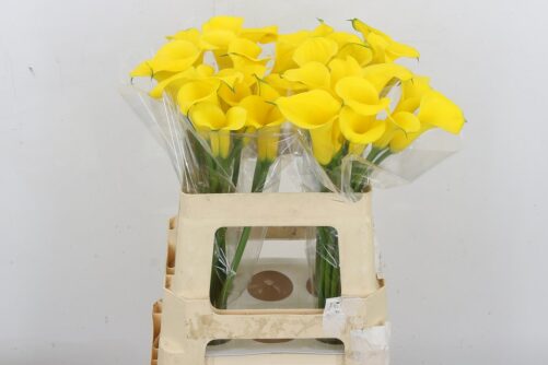 YELLOW CALLA LILIES – Fresh from the Dutch Flower Auctions. An excellent flower which looks fabulous in a slender vase.