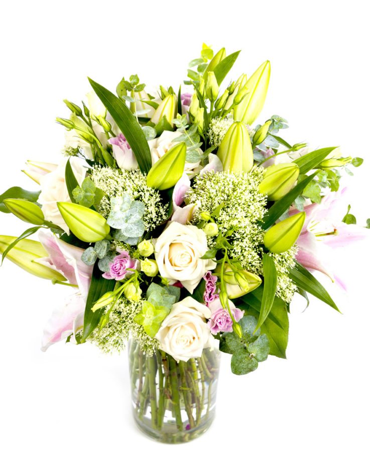 Our Best Selling Flower Subscription – Elegant Stems Range is a simple way of receiving a regular delivery of beautiful flowers. These stylish arrangements are designed to be a front facing display so that you really do get to see all the flowers. Great to have against a wall in the drawing room or hall way.